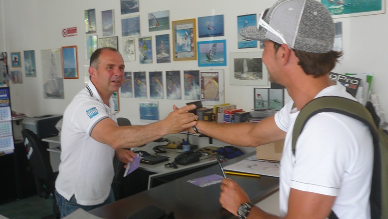 Soo my trip it was,,,I went from Pisa to Prato where the factory is,from Prato to bologna to go to the Adriatic sea by tren,,in the Adriatic sea my first stop was in Pesaro,then i when to Ancona (Senigallia)where Challeger sails made their sail,PIC2) because Claudio Badiali is the Italian Mistral Importer and i when there to pick up some promo postcards that Mistral International send to me.After this i started to visit some windsurfing shops and do some autografes all the way up from Ancona, Riccionni ,Rimini,Bergamo and Milan.